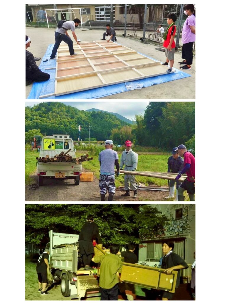 「The棚田コンサート」では舞台や階段を作ってくださり、「竹のベンチテーブルを作る」と言いながら40本ほどの竹が手配出来てないときは、人を集めて竹を切って運んでくれるし、作ったはいいけど学校まで運ぶのに大きな用水路が難関だったときはユニックを借りてきて用水路の上を吊り下げて、トラックで運んでくれた方もいました。